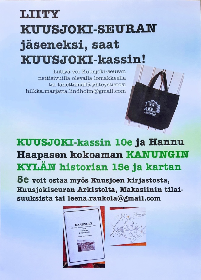 Etsitkö jotain tietoa tai kuvaa Kuusjokeen liittyen?Haluaisitko tulla Arkistolle tutkimaan vanhoja kuvia, lehtiä, karttoja tai muuta materiaalia Kuusjoelta?