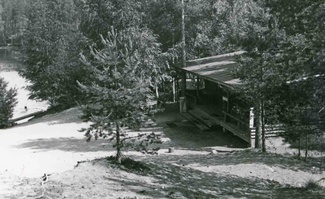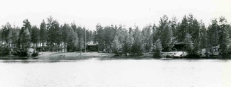 ![]() Tukeista tehtiin pyykkilauttoja, joilla voitiin myös seilata. | ![]() Uimaranta rakennuksineen järveltä päin |