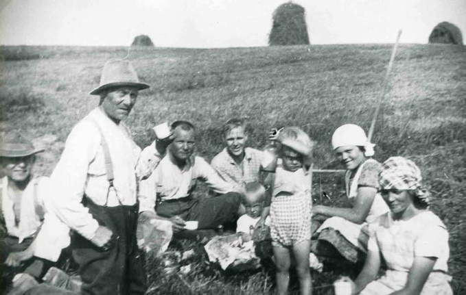 ![]() Kahvitauko heinätöiden välillä Kuttilan Keto-Isotalossa 1930-luvulla. Keskellä on isäntä Paavo Isotalo. |