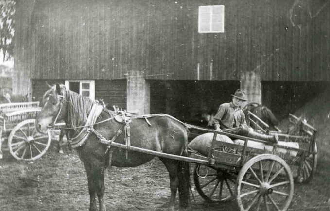 ![]() Tiskarlan Haikian poika Esko on myllyreissulla hevosella. |